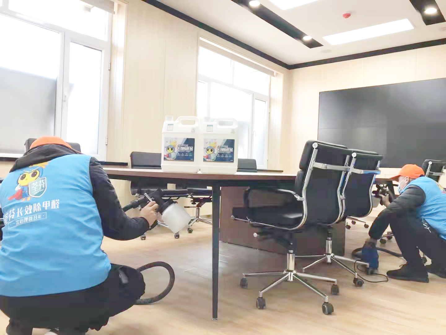 b、施工內(nèi)容:室內(nèi)空氣污染物甲醛治理、政府除甲醛