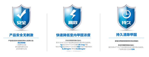 日 本GRAFTON株式會(huì)社,十三年來致力于將甲醛降低到無限趨近于0,保護(hù)兒童遠(yuǎn)離由甲醛污染引起的白血病等危害。旗下GRAFTON除醛系列產(chǎn)品,性能 領(lǐng)先世界。銀光環(huán)境與GRAFTON株式會(huì)社達(dá)成戰(zhàn)略合作,引進(jìn)荃芬GRAFTON甲醛清除劑,為中國(guó)消費(fèi)者提供凈醛服務(wù),消除甲醛危害,保護(hù)家人健康。