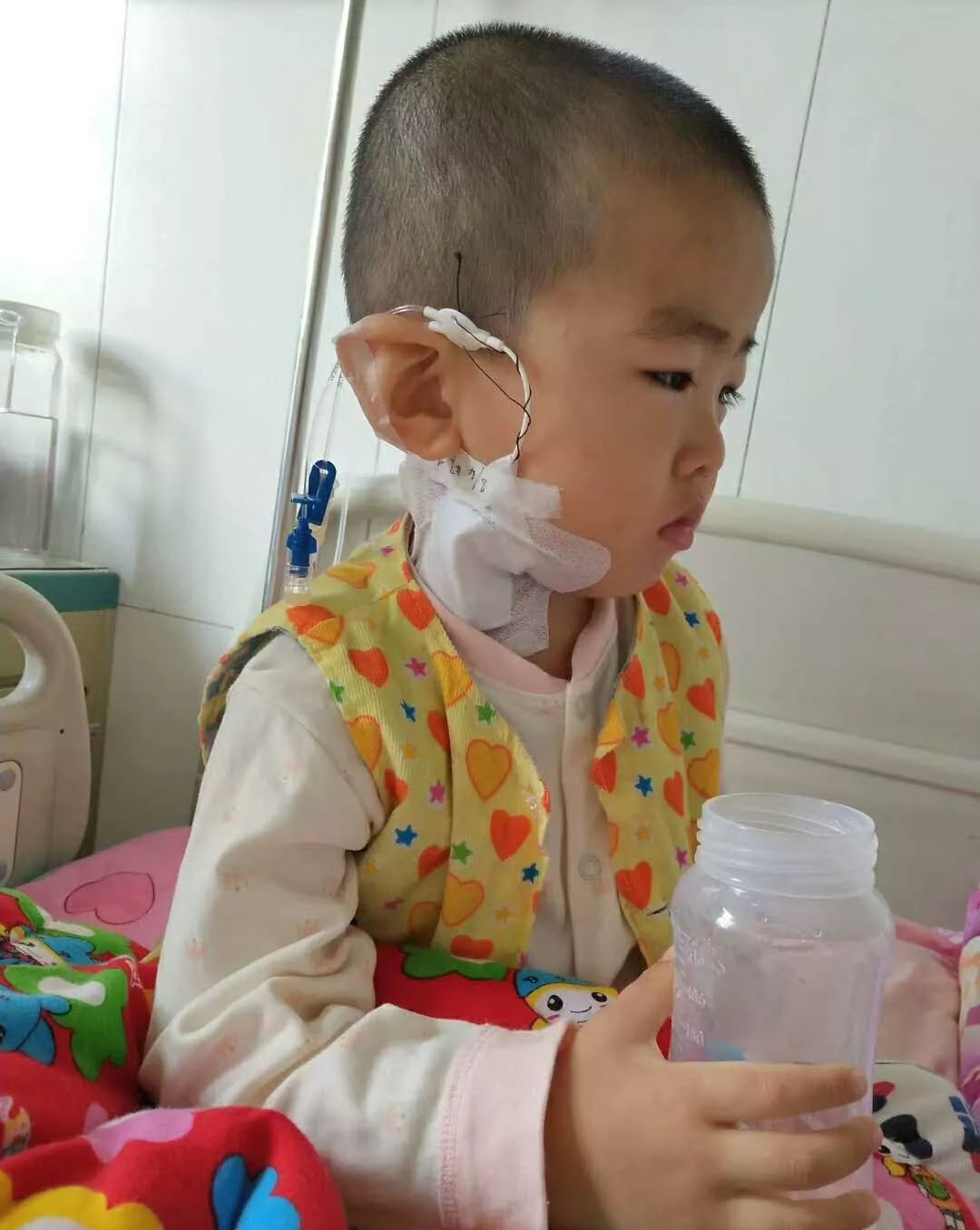 4月8日12:30:化療開(kāi)始了。小睿睿做了頸動(dòng)脈留置針手術(shù),全麻了四個(gè)小時(shí)才能吃喝。