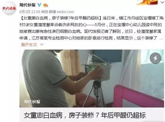 這樣的新聞還是屢屢映入眼簾。南方都市報(bào)7月份就報(bào)道過在廣州珠江醫(yī)院兒童血液病病區(qū)里,60張病床的設(shè)置,50多個(gè)都是白血病患兒,而其中60%-70%患兒家中有過裝修史或者新裝家具史。