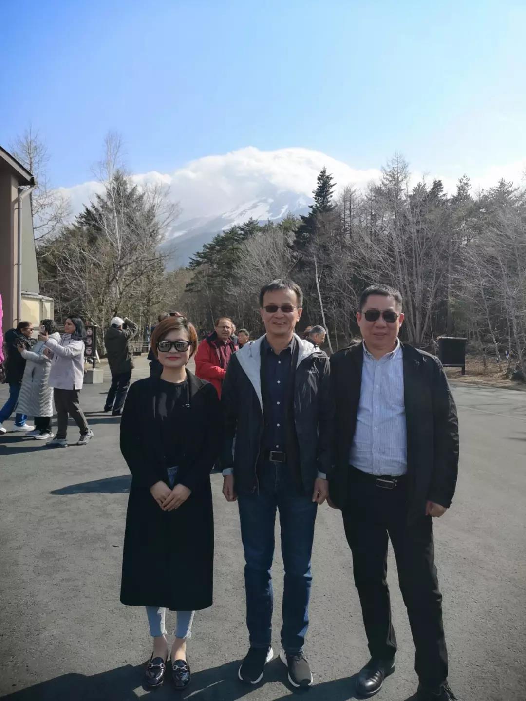 左起:荃芬鄭州服務(wù)商陳淼、荃芬杜煒東、荃芬無錫服務(wù)商趙宏在富士山下