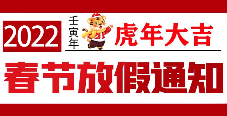 新的一年里心想事成、財(cái)源廣進(jìn)、虎氣沖天、虎虎生威、虎年大吉!我司2022年春節(jié)放假時(shí)間為:1月29日-2月6日(共9天),2月7日(初七)正式上班,放假期間,如有業(yè)務(wù)問題咨詢,請撥打400-081-5586全國客服熱線,謝謝!